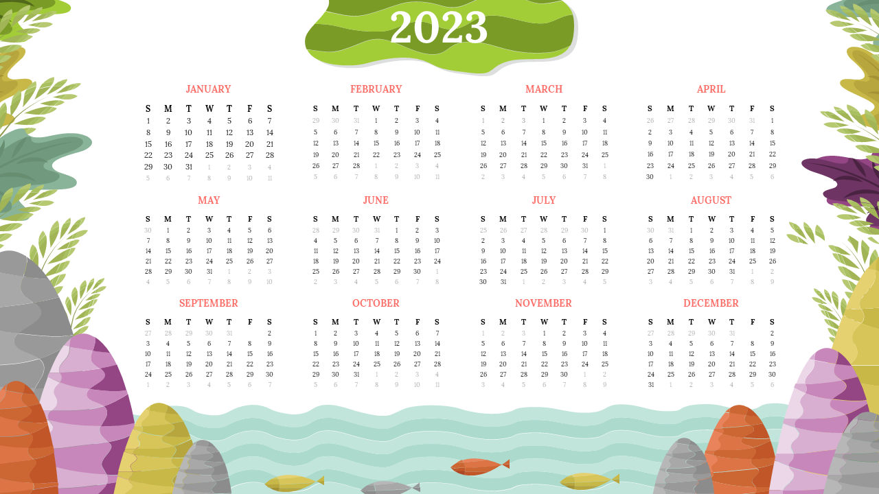 The 2023 Yearly Calendar provides a complete overview of all 12 months in a single glance, allowing you to plan and organize your year effectively. It displays important dates, holidays, and milestones, helping you stay on track and manage your time efficiently. With the 2023 Yearly Calendar template, you can customize and personalize the design to suit your preferences. Add colors, highlight events, and make notes to create a visually appealing and functional calendar that fits your needs and style.