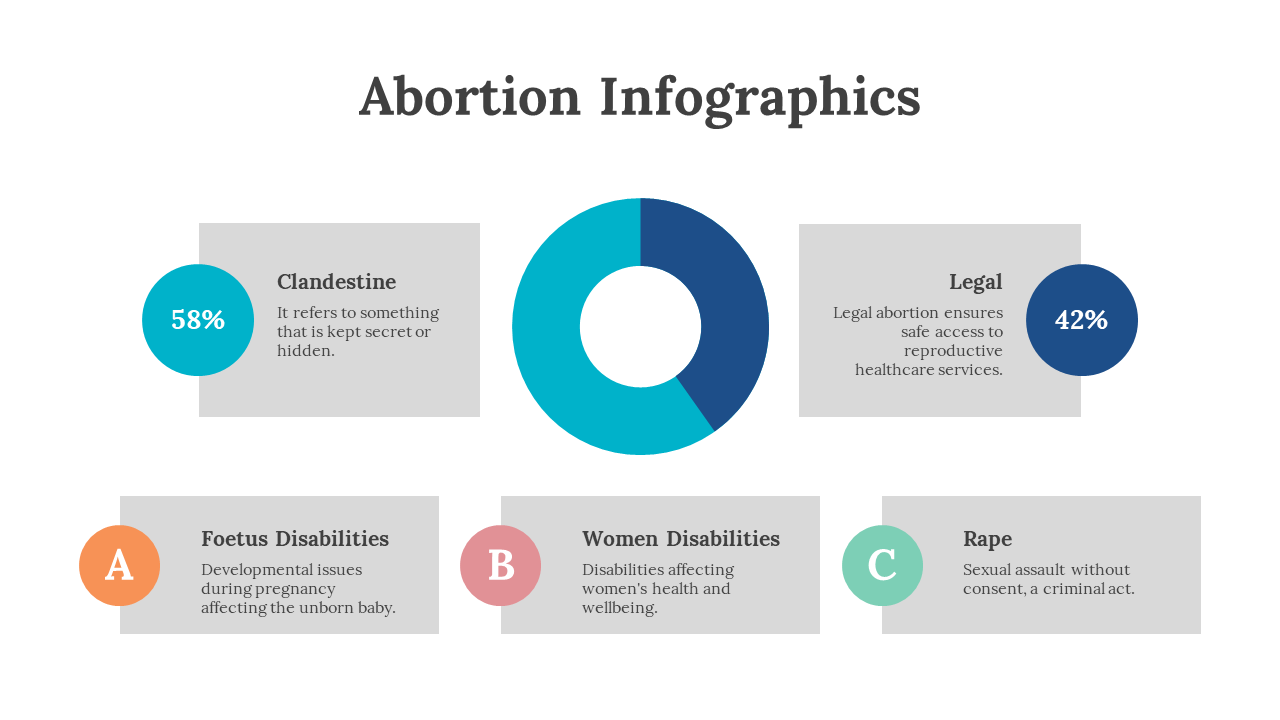 Abortion Infographics provide visual representations of information related to abortion, including statistics, laws, and medical procedures. They are designed to help people better understand the complex issues surrounding abortion and to inform public discourse. Infographics can be used to break down complex data into easy-to-digest and engaging visuals that can be shared on social media, presented at conferences, or used in educational materials. Using an Abortion Infographics template can help ensure that the information is presented clearly, accurately, and with a consistent visual style. This can help increase the effectiveness of the message and facilitate the understanding of the topic.
