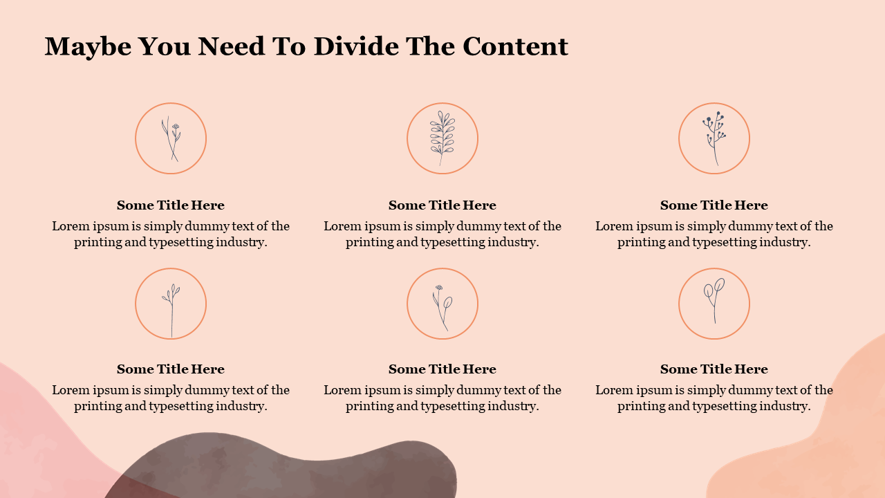 Aesthetic slide with a beige background featuring six text sections, red arrow icons, and floral illustrations on the sides.