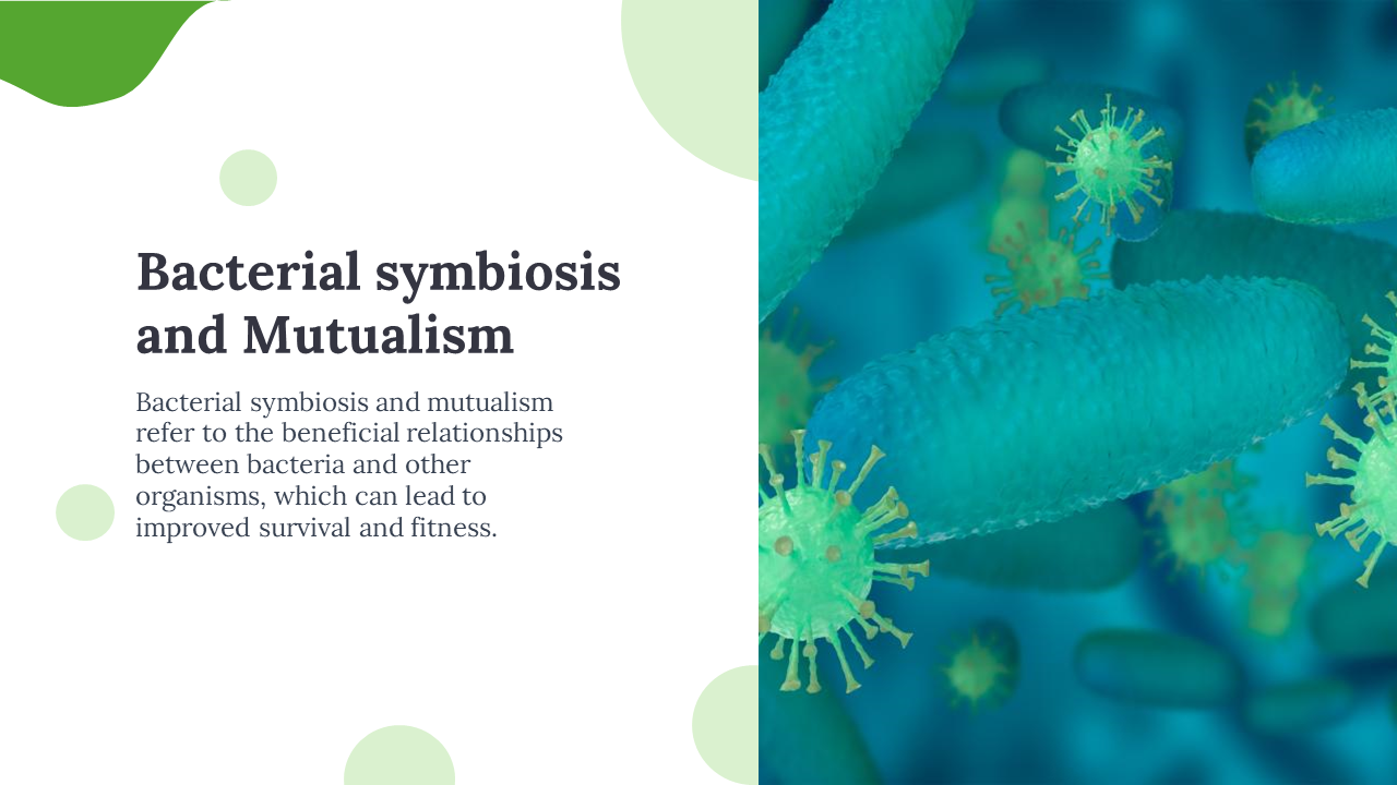 Bacteria are single celled microorganisms that can be found almost everywhere on earth, including soil, water, and living organisms. They can have either a beneficial or harmful impact on humans, as they are involved in important processes such as digestion and decomposition, but can also cause infections and diseases. Bacteria are incredibly diverse, with various shapes, sizes, and structures. Some bacteria are also capable of movement using flagella or other mechanisms. They can reproduce rapidly, allowing them to evolve and adapt quickly to changing environments, making them a crucial research topic in fields such as medicine and biotechnology. This template can help others create engaging and informative presentations on bacteria by providing a structure and format for organizing information on their characteristics, classification, and impact on human health and the environment.