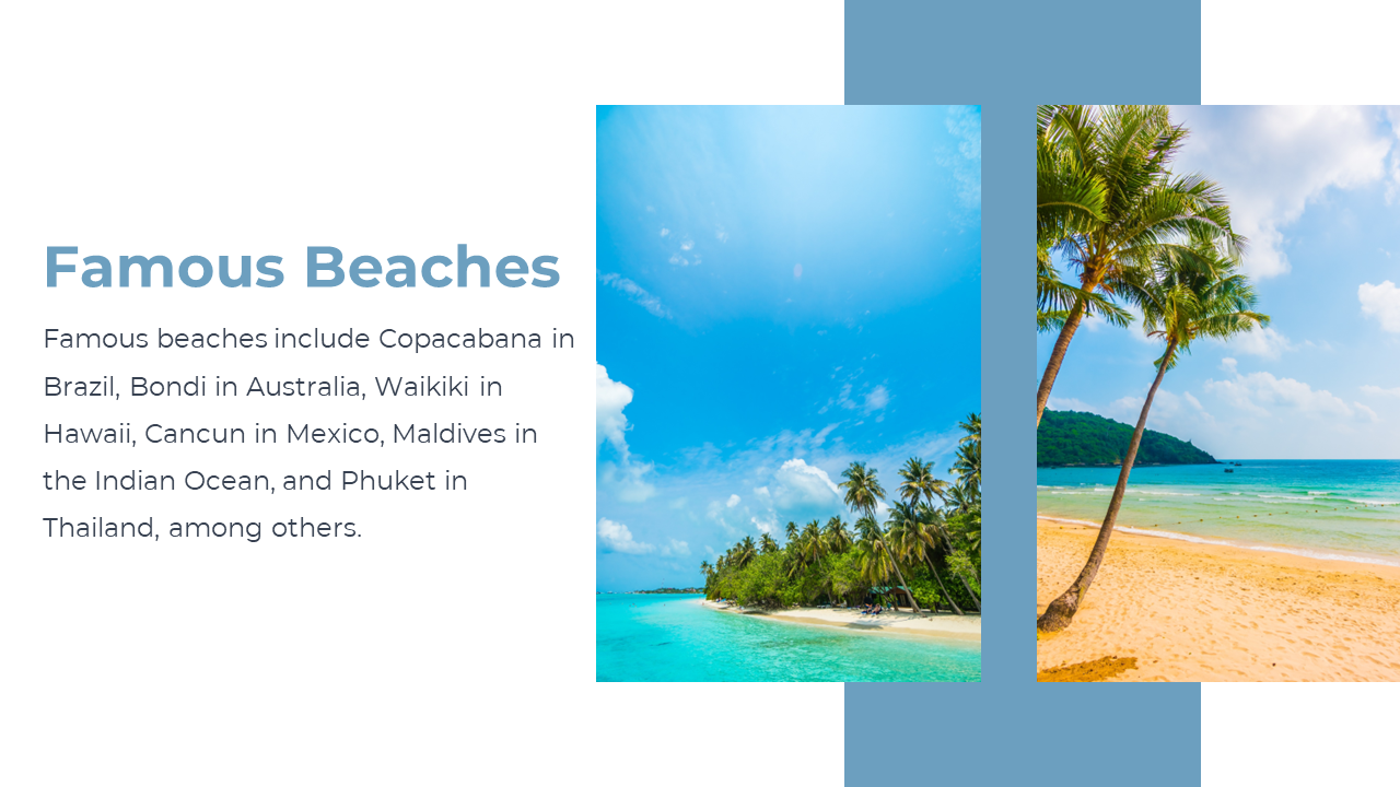 Beach: A place to live blissfully! Grab this amazing template to display your vacation plans for a beach vacation or beach break. The template features a realistic beach image with a lighthouse to keep viewers willing to engage throughout the performance. Use this as a title card for your PowerPoint presentation to grab viewers' attention from the beginning. Colors and images can always be edited to fit the mood of your slideshow. Do not hold back! Now pick up the slack! Talk about all the exciting adventures, the thrill of watching the waves, and enjoying the summer with your group.