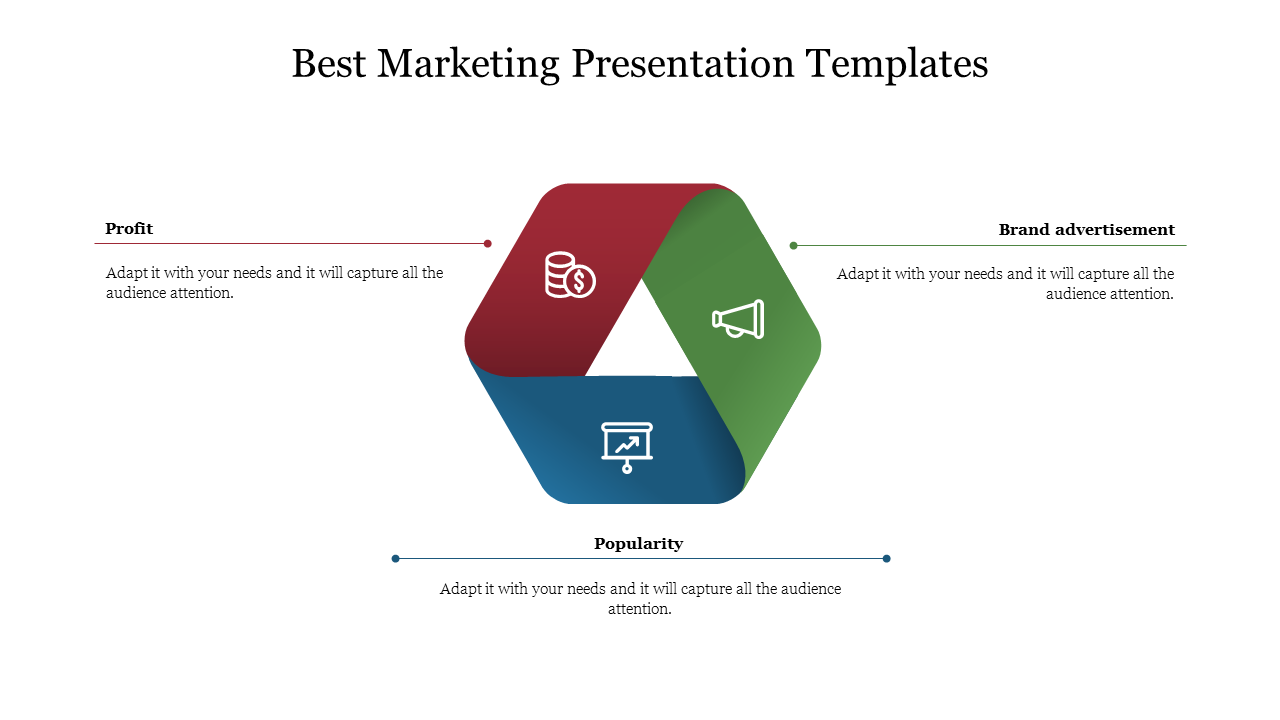 This pre-designed marketing presentation slide combines eye-catching graphics and a template for an engaging and effective visual appeal. With easy customization options, users can swiftly add icons, modify text, and include personalized images, ensuring a unique and impactful presentation.