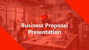 i) Our template offers 22 slides, starting with a professional scene of individuals working on laptops, evoking a collaborative office environment. The text stands out in white against a striking red overlay, creating a visually engaging experience. This template is designed to cover a wide range of topics related to business proposals.