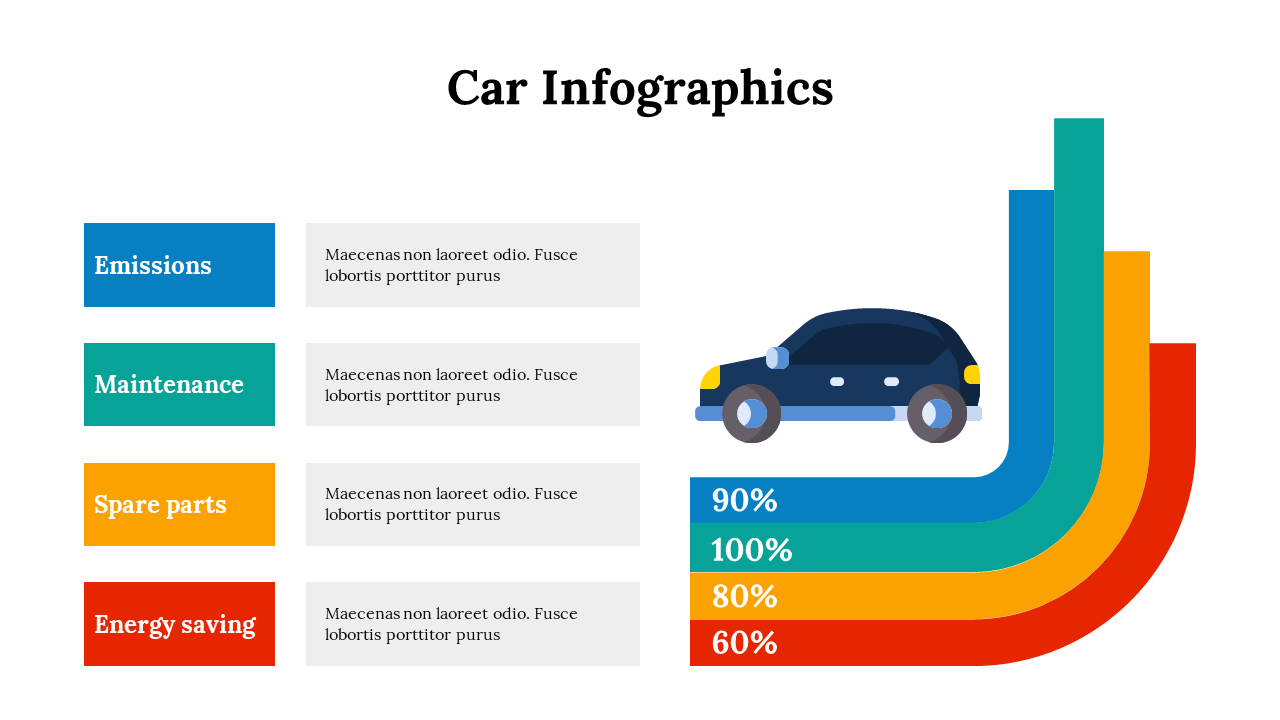 Whether you're a car enthusiast or simply interested to share new tech, this template is the perfect resource. With easy-to-read charts, graphs, and diagrams, you'll gain insights into topics like the history of automobile design, the most popular car brands worldwide, and the different types of engines used in modern vehicles. And the best part? This template is fully customizable, so you can add your data and branding to create a personalized presentation that truly speaks to your audience.