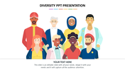 Diversity slide featuring a group of diverse people in various traditional and modern outfits with placeholder text below.