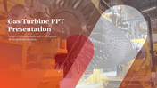 Industrial gas turbine with semi-transparent red and orange geometric overlays, with text placed on the left.
