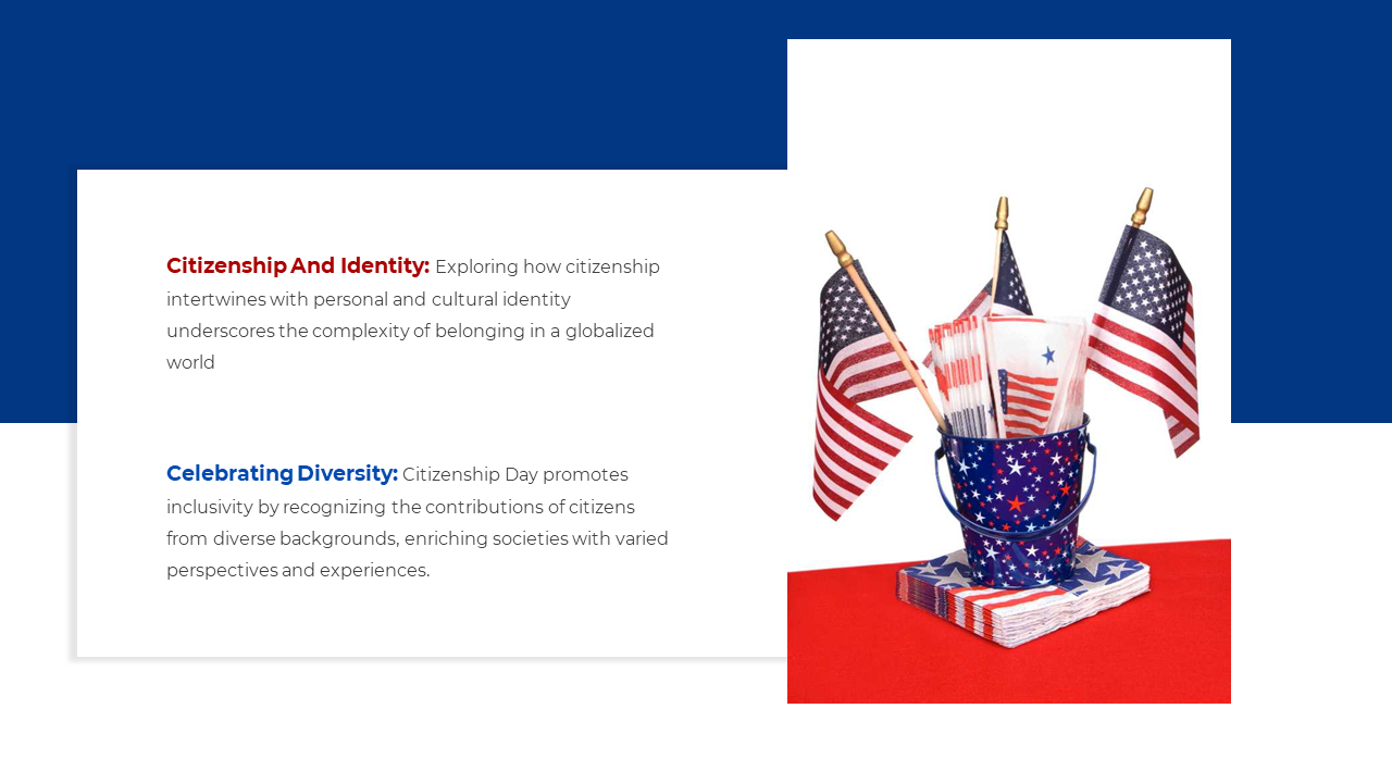 Mark the significance of Citizenship Day, observed annually on September 17th in the U.S., as a tribute to the adoption of the Constitution in 1787. This day underscores the essence of responsible citizenship, embracing civic engagement, and upholding the constitutional rights and duties. It's an opportunity to reflect on the democratic principles that bind the nation, encouraging conversations about civic participation and justice for all. Elevate your Citizenship Day presentation using our versatile PowerPoint template. Tailored for educators, civic groups, and those passionate about civic awareness, this template offers a spectrum of editable slides. Covering historical context and contemporary relevance, it streamlines content creation, allowing you to emphasize your message. Enrich your presentation with captivating visuals and succinct content, creating an engaging experience. By utilizing this template, you empower your narrative and promote civic responsibility, contributing to the ethos of Citizenship Day and fostering an informed citizenry.