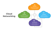 Cloud computing exhibit designs can define a company's future IT architecture. Center cloud computing design for PowerPoint is a template with 100% customizable shapes that you can use to display cloud ideas and computing, such as cloud storage, cloud application services, IT information technology architecture, or corporate IT. This display template has a center circle with a cloud form and four icons attached to it. Try now to explore your technology more appealingly.