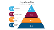 Compliance risk refers to the potential legal or regulatory consequences an organization faces when failing to adhere to established laws and standards. It encompasses the threat of fines, legal action, and reputational damage due to non-compliance with industry regulations. Effective management of compliance risk involves implementing robust policies, monitoring procedures, and staying abreast of evolving regulatory landscapes to ensure organizational practices align with legal requirements and industry norms. Tailored for compliance professionals, legal teams, and executives responsible for governance and risk management. Facilitates clear communication on compliance risk factors, fostering awareness and informed decision-making. Editable slides with intuitive visuals, offering a versatile platform for diverse compliance templates. this templates has different shapes and multicolor themes. Saves time by streamlining complex compliance information, enhancing communication impact across diverse audiences. Utilize this template to elevate your compliance discussions, ensuring a proactive and well-informed approach to regulatory challenges. Download now for a more effective communication strategy.