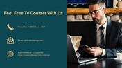The contact us page is vital in business presentations to keep your audience in touch with you. SlideEgg offers a highly attractive Contact Us PPT For Networking Presentations. It has a deep blue background with attractive multicolor text, which will grab your audience's attention. The bold typography enhances the look and feel of this slide. It includes enough text boxes to add your contact info and has enough space to upload your logo or photos. Download this high-quality slide today and promote your networking services.