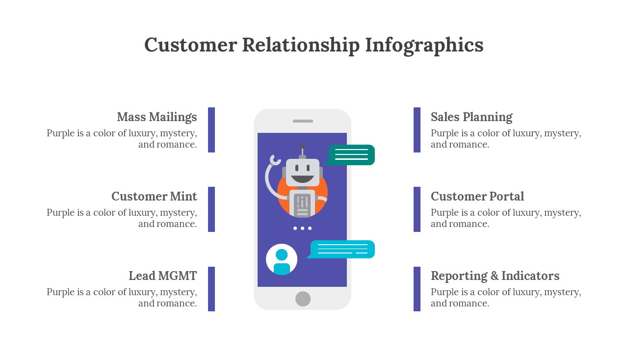 The continual connection between a company and its customers is referred to as a customer relationship. It is a two-way street that promotes loyalty, trust, and involvement. This package includes a pack of professionally created Customer Relationship Infographics PPT templates, ideal for customer service and affinity regime displays. Customer service, joy, loyalty, venture, segmentation, and other themes are in the bundle. Each design is editable and features high-quality images, icons, and images. These templates are ideal for business displays, corporate training sessions, and other forms of skilled touch. The package works well with PPT and Google Slides and is simple to update and customize. This package is excellent for boosting and motivating action. To boom, try.