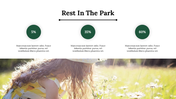 A bundle of slides with inspiration for what you can do with a nice day in the park. Containing a large number of powerful and effective slides, they are designed specifically to help transport your audience. Each slide is fully editable and customizable; you have the power to make any changes you want to optimize its communication value; it includes images and illustrations included in the same style as on PowerPoint and Google slides.