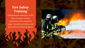 The Fire Extinguisher Presentation PowerPoint Template features a fire extinguisher illustration with a white background. It is designed like a firefighter is fighting against the fire. It has four multicolor circles with images and information about fire extinguishers. It is a content-ready slide. You can use this slide to promote fire safety. Download Now!