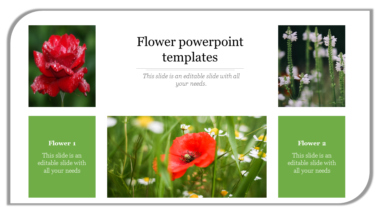 Do you feel like your presentation could use a touch of spring? Breathe life into your content with our Flower PowerPoint templates! Ditch the boring slides and wow your audience with a presentation that blooms with beauty. Imagine a slide featuring elegant floral images – like a breath of fresh air for your content! These aren't just decorations; they can be powerful tools to visually complement your message. Two areas act like a springboard for engagement: captions for key points, bold titles to grab attention, and dedicated text areas to expand on your ideas. Gardeners, florists, event planners, or anyone who wants to create a beautiful and informative presentation – these templates are perfect for you! Stop struggling with bland presentations and download these templates today! With their stunning floral designs, crystal-clear communication features, and easy-to-use format, you'll be developing presentations that blend elegance with clear messaging, leaving a lasting impression that will blossom in your audience's minds. It's time to ditch the dull and let your presentations bloom!