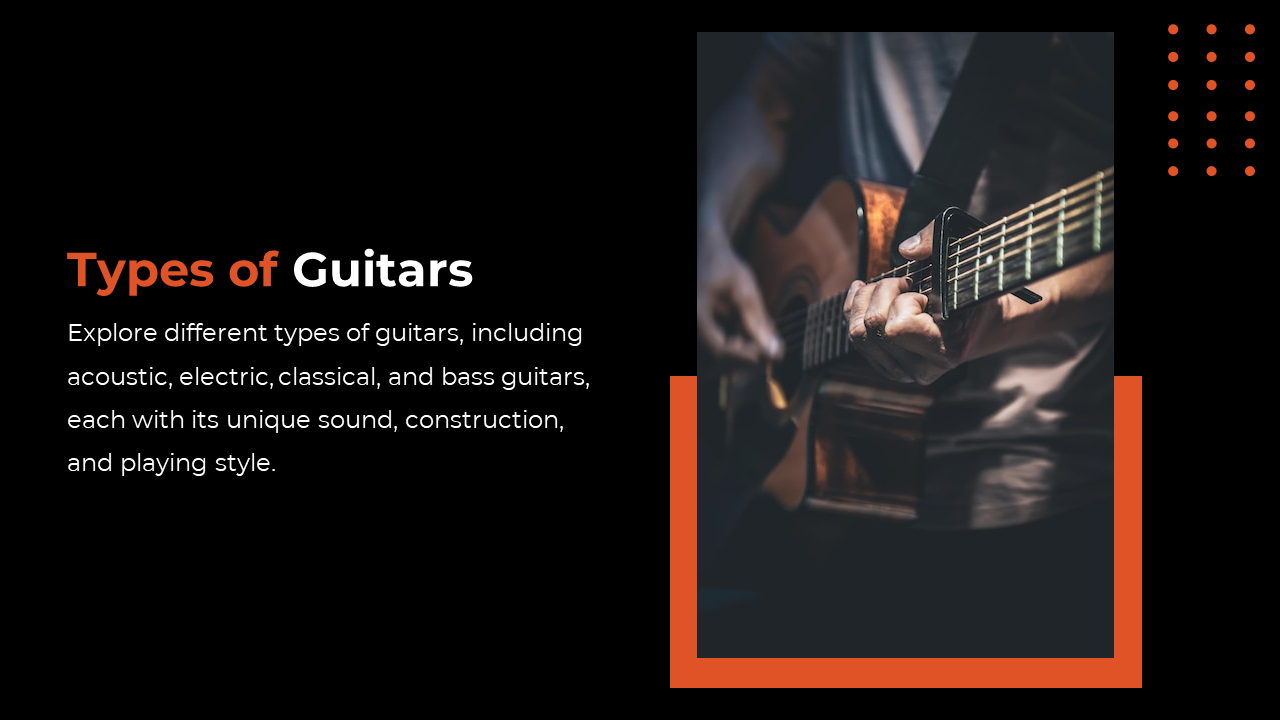The guitar, an iconic musical instrument, is loved by enthusiasts worldwide. With its six strings and versatile sound, it captivates audiences in various genres like rock, blues, and classical. From the energetic riffs of electric guitars to the soothing melodies of acoustic ones, the guitar's allure is undeniable. Whether you're a beginner strumming your first chords or a seasoned player shredding solos, the guitar offers endless possibilities for creativity and self-expression. And if you're looking for inspiration or guidance, you can find numerous online tutorials, chord charts, and even guitar templates to help you on your musical journey. So grab a guitar and let the music flow!