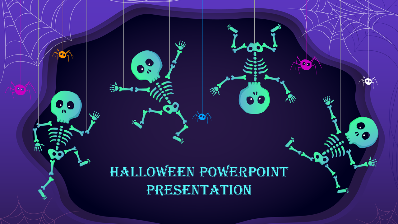 The template is creative with skeleton designs that give a symbol of Halloween. The template is handy to make the audience understand the topic easily and bring the festival greeting wonderfully.