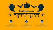 Looking for the perfect spooky ambiance for your event? The Happy Halloween PowerPoint Slides model is your answer. Whether you're planning a home event or a business presentation, these slides, available at Slide Egg Gallery, are designed to captivate and impress your audience. With its black and yellow background, combined with the possibility of including ghosts, monsters, pumpkins, and more, it ensures an immersive Halloween experience.