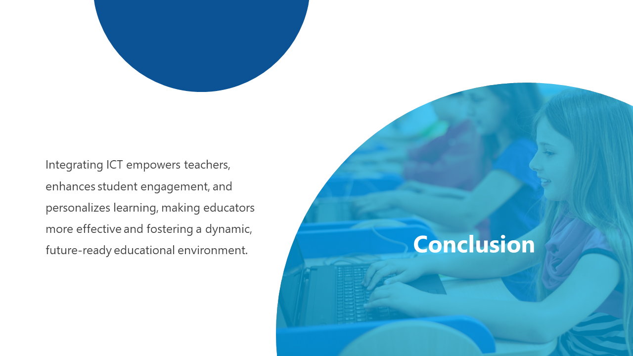Elevate your teaching methods with our expertly crafted ICT in education PPT and Google Slides templates. Designed for educators who aspire to integrate Information and Communication Technology (ICT) into their teaching practices, these templates provide a comprehensive toolkit to enhance classroom engagement, streamline lesson planning, and foster interactive learning environments.