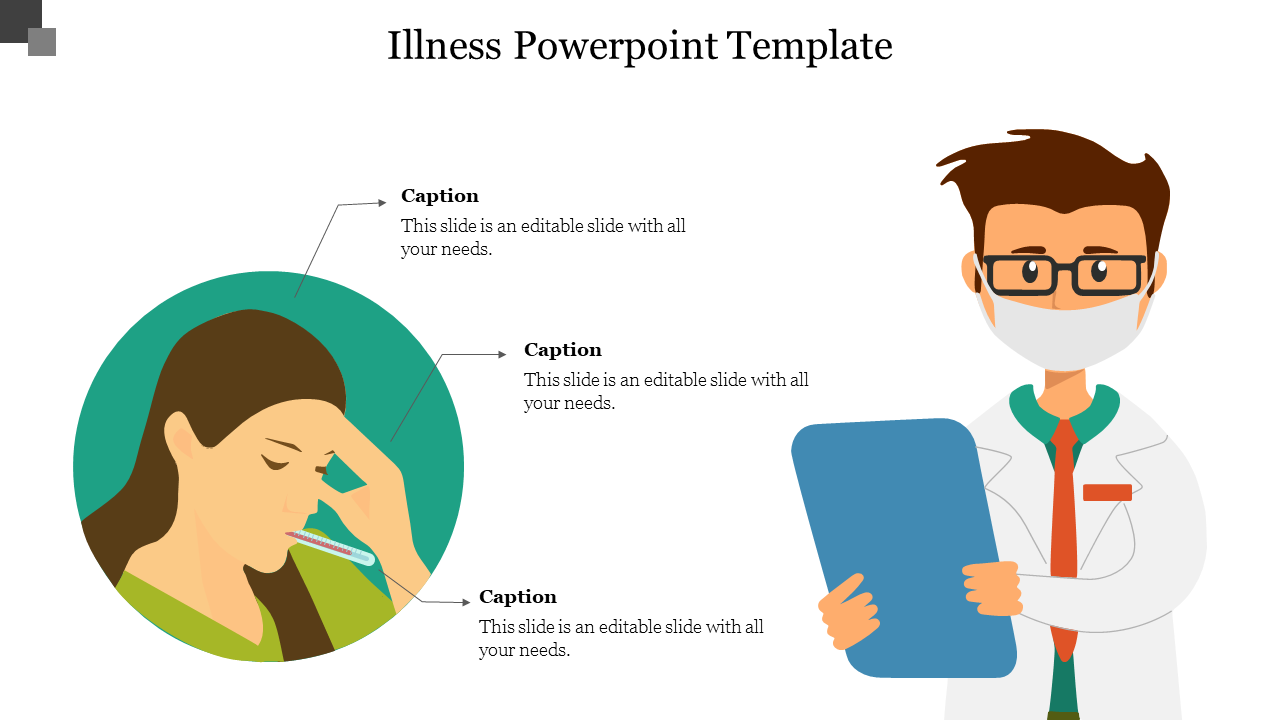 Download this Creative Illness PowerPoint Template Slide for all your corona and health presentations. This is a proficiently well-made template. This is pre-designed template saves your time in presentation-making. This template is a 100% user-friendly template.