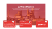 From the welcome slide to the company overview, factory tour, business strategy, services, customer service, finance, goals, SWOT analysis, and more, we have it all included. With a fully customizable and user-friendly interface, our industry presentation deck is the ultimate tool for businesses of any size looking to create an engaging presentation that sets them apart from the competition. Why not try it out to showcase your image to all?