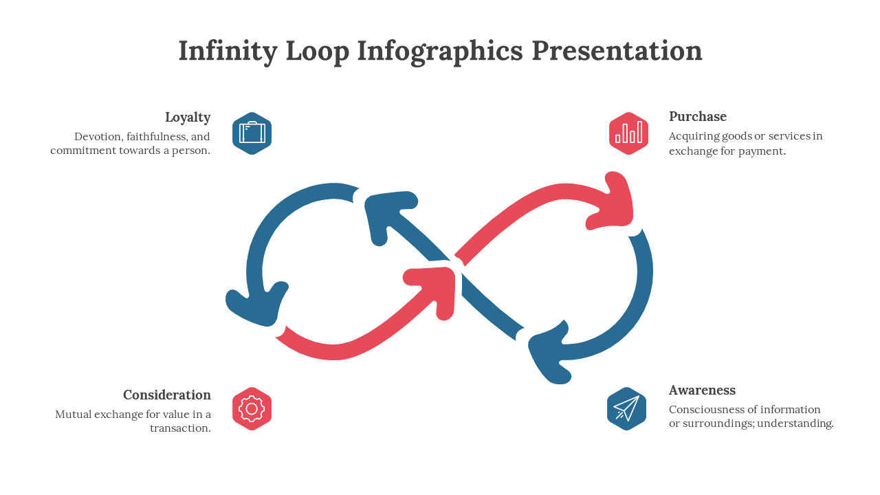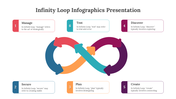 Get this multi-toned Infinity Loop infographics presentation template to showcase the never-ending process in a single presentation. Our slides are well-designed to depict your ideas in a visually striking manner. The infinity loop diagram is ideal for effectively illustrating the project process with stages. Get this template if you are assigned to a new project and want to give a demo presentation about your work. It will save you time as well. You can quickly finish your work in a minute without any hassle. Don't keep your legs back to get this slide because it is ready to use layout with a 100% customization option.