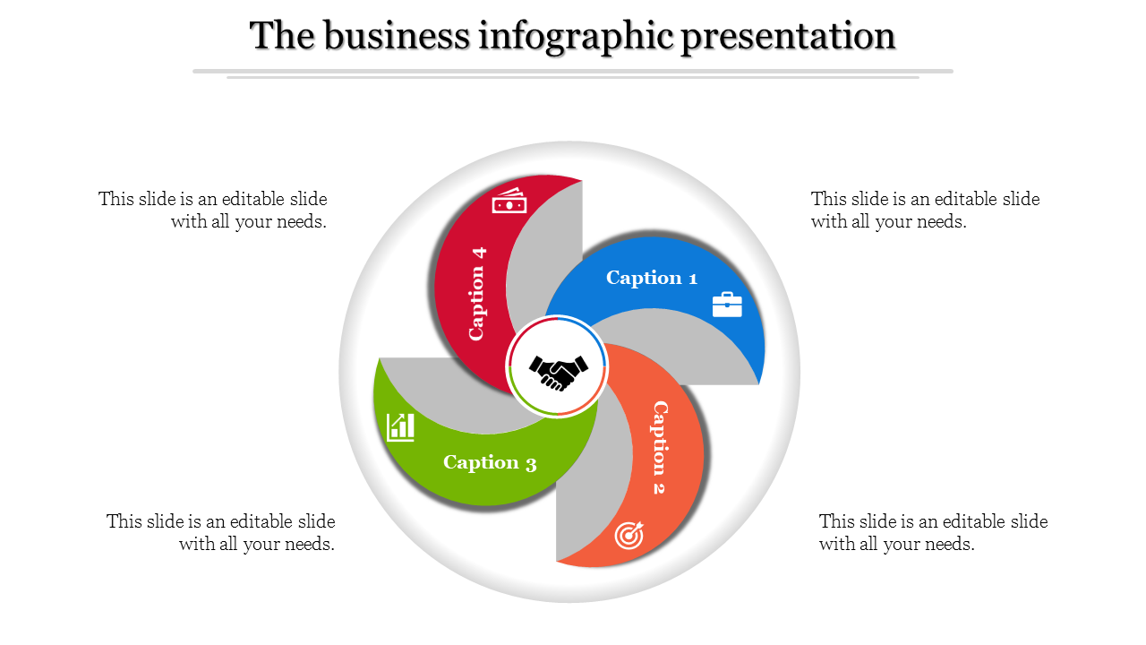 Unleash the potential of your presentations with our Infographic Presentation Template and Google Slides Themes. It has a dynamic rotating blade design, this template boasts four meticulously crafted blades, each adorned with captivating icons, captions, and text areas. Ideal for professionals across various fields, including educators, marketers, consultants, and business leaders, this template offers a seamless blend of style and functionality. Whether you're visualizing data, explaining processes, or showcasing key insights, our Infographic Presentation Template empowers you to communicate effectively with your audience. Elevate your storytelling, captivate your viewers, and leave a lasting impression with visually stunning and informative presentations. Take your presentations to the next level and stand out from the crowd with our template.
