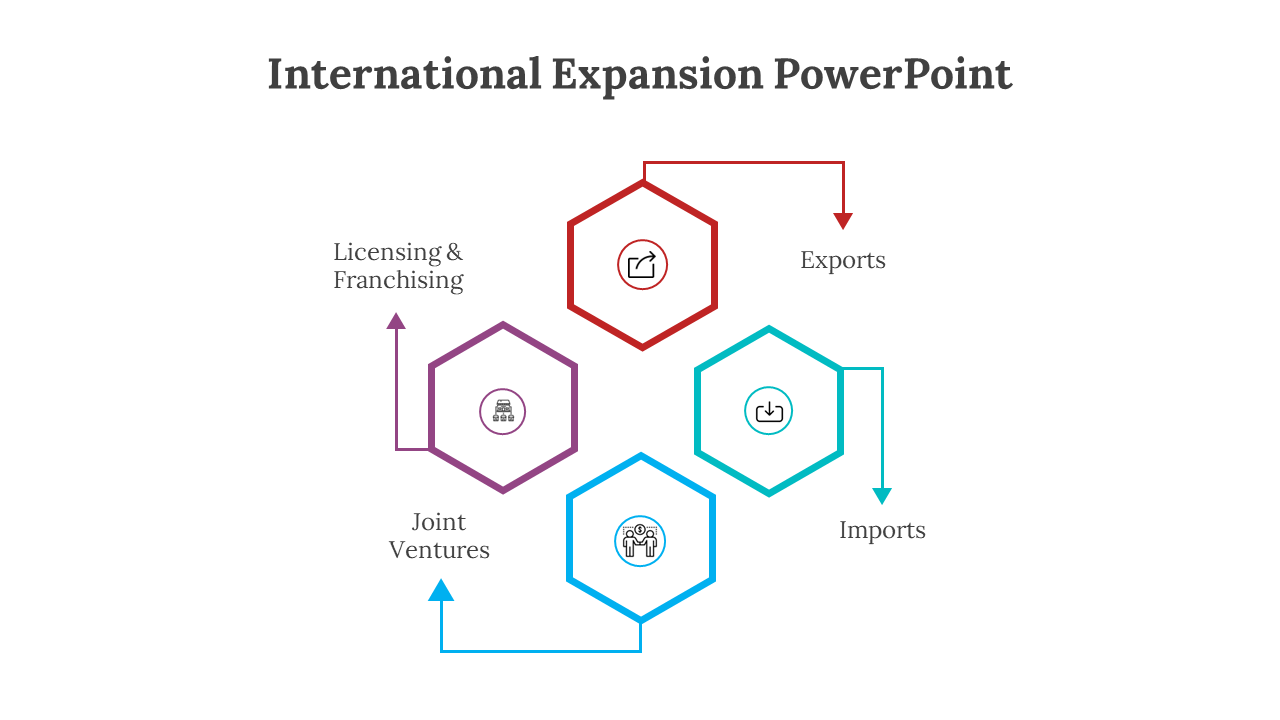 Are you considering taking your business beyond borders? International expansion is the strategic move that can propel your company into new markets, unlocking untapped potential. Expanding internationally allows you to reach a broader customer base, diversify your revenue streams, and gain a competitive edge in the global marketplace. Whether you're a budding entrepreneur or an established corporation, the concept of international expansion opens doors to endless possibilities. Our International Expansion PowerPoint template is here to guide you through this exciting journey. This template is perfect for business leaders, entrepreneurs, and professionals seeking to present their international expansion strategies effectively. It offers a user-friendly interface, making it easy to customize each slide to match your unique content. This professionally designed template covers all aspects of international expansion, from market analysis to entry strategies, risk assessment, and growth projections. The best part? All slides are fully editable, allowing you to add your data, graphics, and branding elements effortlessly. By using this template, presenters can save valuable time while ensuring their international expansion strategy is presented cohesively and visually. The template's professional design enhances your credibility and helps you convey complex information with clarity. Don't miss out on the opportunity to simplify your international expansion presentations. Elevate your pitch and captivate your audience with our PowerPoint template. Streamline your communication, impress stakeholders, and make informed decisions that drive your global success story. Download our template today and embark on your journey to international expansion with confidence.
