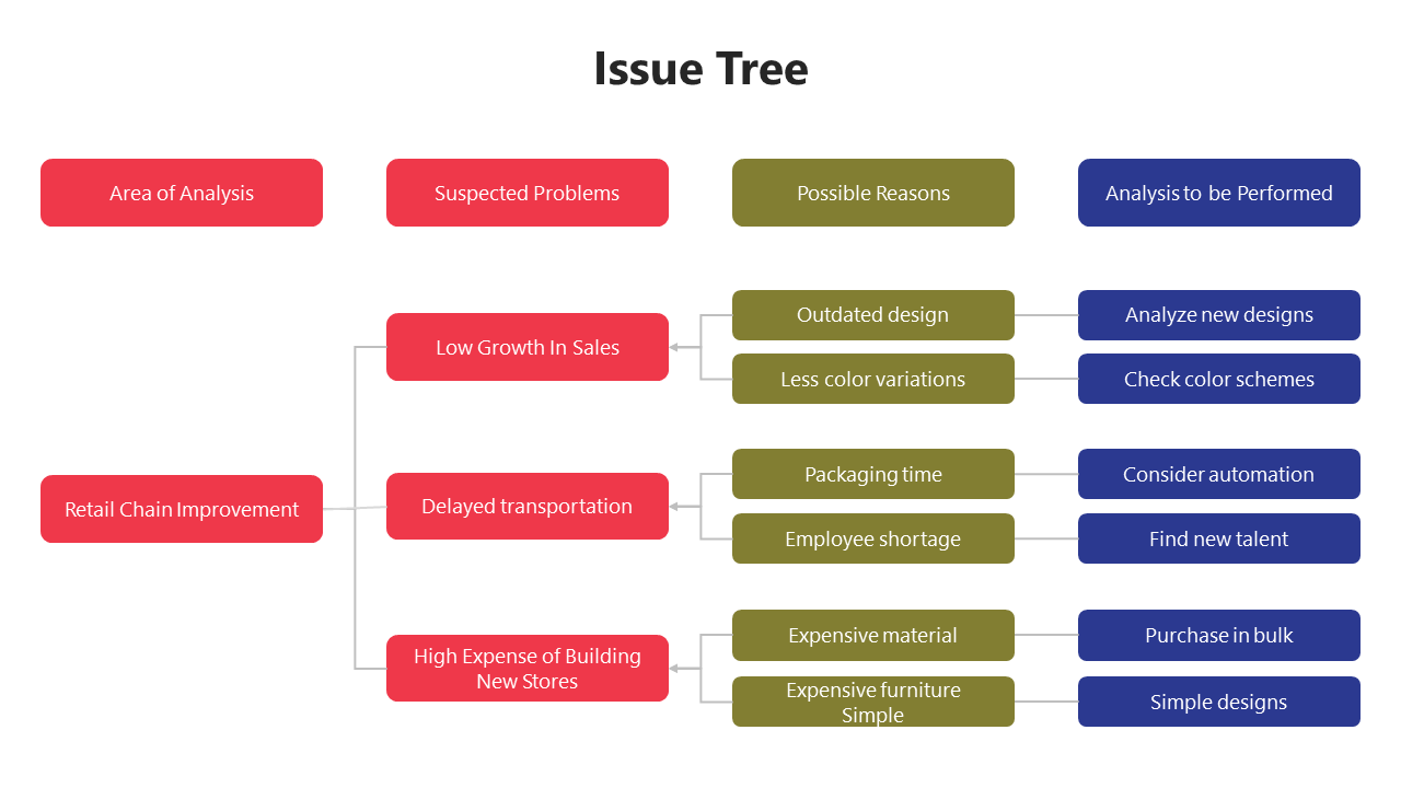 A problem tree is a powerful analytical tool that helps break down complex problems into manageable components, leading to effective solutions and informed decision making. Our Issue Tree PowerPoint template is designed to help you visualize this process, making it easier to identify root causes and potential solutions. This template is perfect for business analysts, consultants, project managers, and educators who need to present a problem-solving framework in a clear and structured manner. Slides are fully customizable and visually appealing, allowing you to effectively communicate a step-by-step analysis of any problem.
