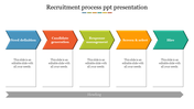 How about trying this Job Interview PPT template for your compelling presentation. The template is creative with a pointed flow chart design with multiple color shades. The user can add the template with text in the given text area. The user can add topics regarding the job description and details about the recruitment. This background PPT template is fully customized, and editing this template is much easier. Try now!.