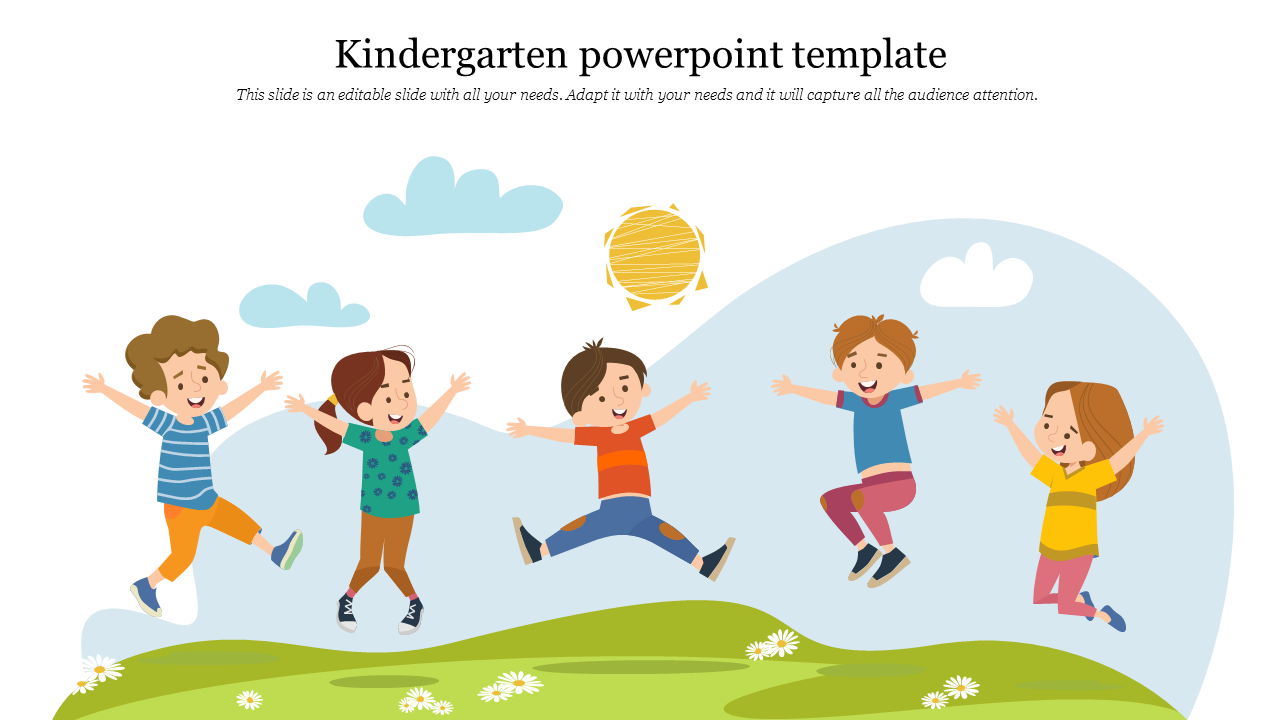 Kindergarten is a form of early childhood education for children aged between three and five years old. It typically involves playful and interactive learning activities designed to develop social, cognitive, and physical skills. The curriculum may include language and literacy development, basic mathematics, art, music, and physical education. Kindergartens may be operated by public or private institutions, and may be part of a larger elementary school or standalone. The primary goal of kindergarten is to provide a foundation for children's future academic and social success. If you want to explain more about Kindergarten, you can use this slide.