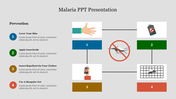 Present the signs and symptoms of malaria using this Malaria PowerPoint Template. You can use these slides in health presentations to create awareness about malaria. It is a highly creative and 100% editable infographic slide that allows you to modify the look and feel to fit your theme. Download this pre-designed slide and make informative presentations.