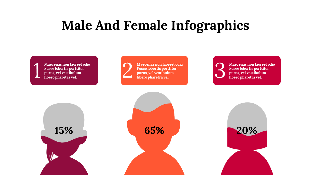 It's hard enough to keep track of the different gender roles in today's world, let alone in a presentation. But now, with our Male and Female Infographics Template, you can easily illustrate and explain the differences between the two genders- all with 21 slides and fun, vibrant, and dynamic infographics. From the subtle, everyday differences to the major life milestones, this template will help you communicate the complexities of male-female dynamics. Perfect for any project that requires gender-related analysis and visual storytelling. Also, this template will make your presentation stand out from the crowd.