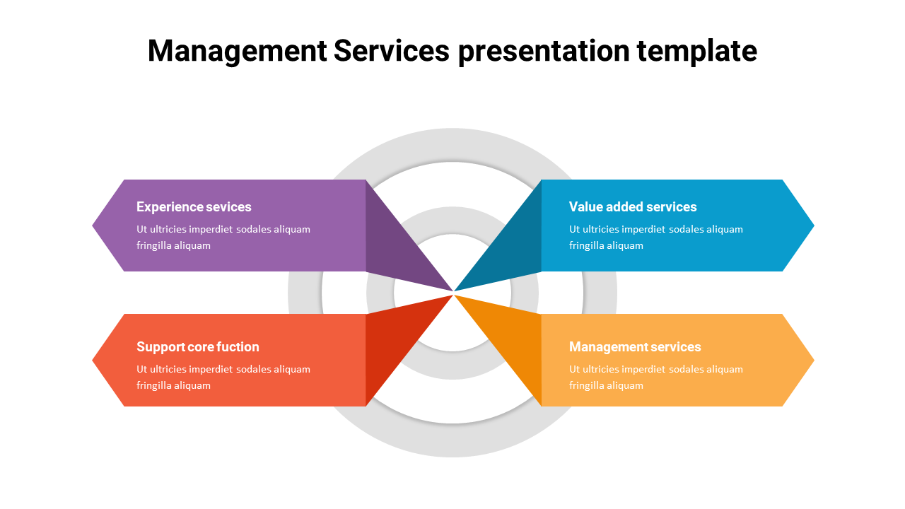 This management services presentation template has been designed to be easily customizable with Google Slides and Microsoft PowerPoint. It is designed using colorful visuals to impress the audience. You can also use this customizable template for PowerPoint presentations anytime you want. It is an easy-to-use and well-designed slide.
