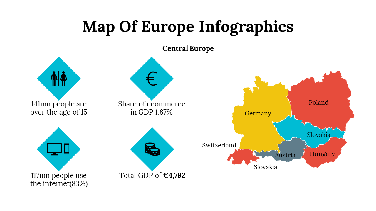 Introducing our Map of Europe Infographics Presentation Templates- the perfect tool to make learning about Europe a breeze, even for the little ones! These templates are not just visually engaging, they're also incredibly informative. Explore Europe's geography, political divisions, and physical features with high-resolution maps. Whether you're an educator, a student, or just an enthusiastic traveler, these templates simplify the complex. From countries to landscapes, dive into the beauty and diversity of Europe in an easy-to-understand format. Get started today and embark on a journey of discovery with our Europe map templates.