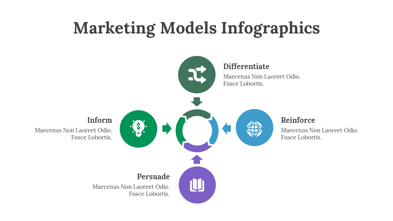 Are you making a presentation to implement a marketing model? If so, here is your presentation set. A pack of 36 vibrant templates at your fingertips. The exclusively designed templates are easy to customize and edit. The user can implement his ideas in these nodes and text areas which can explain the part neatly. Download this amazing pack of templates for your exclusive presentation.