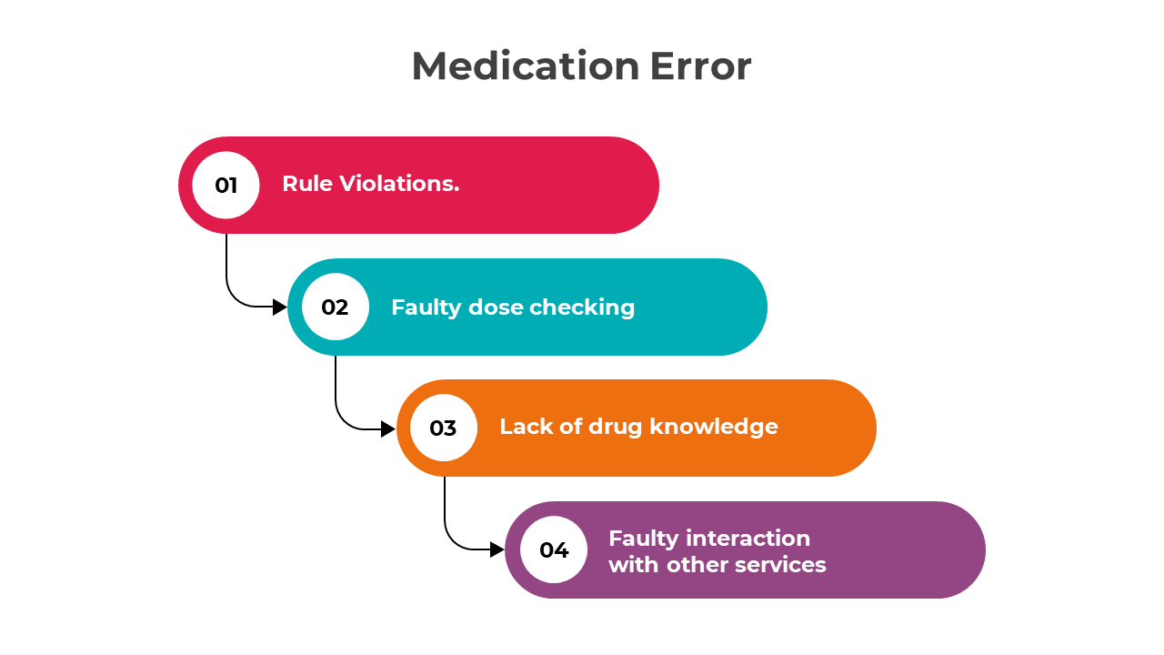 Medication Error refers to any preventable event that may lead to inappropriate medication use or patient harm. This can include administering the wrong medication, incorrect dosage, or using the wrong route of administration. Medication errors can occur at any stage, from prescribing to administration, and can have serious consequences for patient safety. Healthcare professionals strive to minimize medication errors through protocols, double-checking procedures, and technology solutions. By identifying and addressing potential sources of error, healthcare providers work to ensure safe and effective medication management for patients.