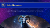 Each slide in this template is crafted to present complex information in an easily digestible format. The color theme of blue and golden not only adds a modern touch but also helps differentiate between various sections of your presentation. The slides are fully customizable, enabling you to highlight the unique qualities of Aries and make your content engaging and informative.