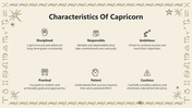 Unlock the potential of your presentations with our month zodiac sign capricorn PPT template. Download now and create professional, engaging presentations that captivate your audience and effectively communicate the fascinating traits of Capricorns.