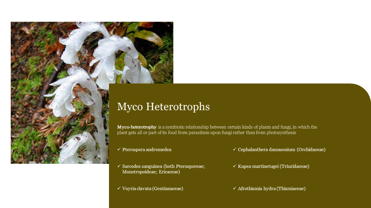 The Myco Heterotrophs PowerPoint Template has an aesthetically pleasing layout with an image placeholder and a text block. It has a beautiful Myco Heterotrophs plant image with elegant flowers. It is a well-designed content-ready slide that will enable you to make a perfect presentation instantly. Find more Myco Heterotrophs PowerPoint Downloads from our site.