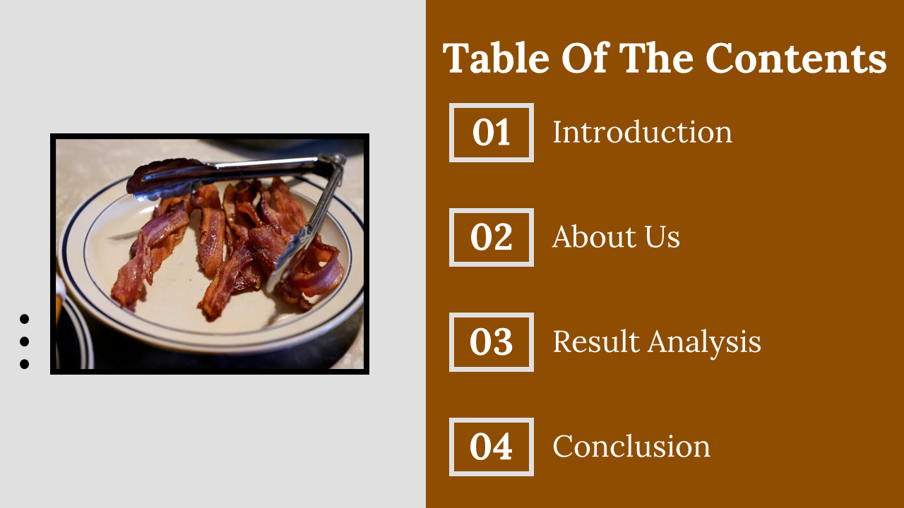If ever there was a food that deserved its day, it was bacon. National Bacon Day is commemorated on December 30th every year. It is the ideal holiday to observe a food creation that is generally known as "meat candy." Try our innovative National Bacon Day PowerPoint slides to make a stunning presentation for this special day. It is a bright and beautiful slide deck with 36 amazing slides. It is designed with modern layouts in nice colors, mouth watering images of bacon, and interesting information about this special day and special food. It has an introduction, history, health benefits of bacon, traditions, activities, tasty bacon facts and recipes, and a conclusion. The abstract brown and white backgrounds add more attractiveness to your presentations. Try now!