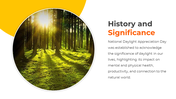 National Daylight Appreciation Day, observed on June 21, celebrates the beauty and benefits of daylight. It serves as a reminder to cherish and make the most of natural light in our lives. This day encourages awareness of the positive impact of daylight on our well-being, productivity, and connection with the natural world. The National Daylight Appreciation Day template can be used to spread awareness, share tips for maximizing daylight exposure, and promote outdoor activities. It can also be utilized to create social media posts, informative articles, or community events that inspire individuals to appreciate and harness the power of daylight in their daily lives.