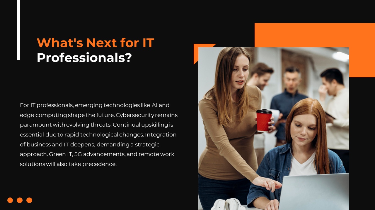 National IT Professionals Day is an annual acknowledgment of the unsung heroes behind our screens: the IT experts who keep our digital worlds turning seamlessly. Celebrated on the third Tuesday of September, this day shines a light on the crucial contributions made by IT professionals in today's hyper-connected, tech-driven world. From troubleshooting software glitches to fortifying cybersecurity, these specialists ensure our digital ecosystems run without a hitch. In a world that relies heavily on technology, IT professionals play a pivotal role in business continuity, data protection, and innovative problem solving. Their expertise not only ensures that organizations function efficiently but also safeguards sensitive information, combats potential cyber threats, and facilitates technological advancements. These tech maestros, often working in the background, help industries evolve, streamline operations, and adapt to the ever-changing digital landscape. Our crafted presentation template is the perfect companion to explore and celebrate the multifaceted world of IT professionals. Whether you're delving into their roles in various sectors or discussing recent tech innovations, this tool guarantees a structured, impactful delivery. It's the ideal resource for framing discussions, training sessions, or seminars, ensuring your audience is both informed and engaged about the indispensable realm of IT professionals.