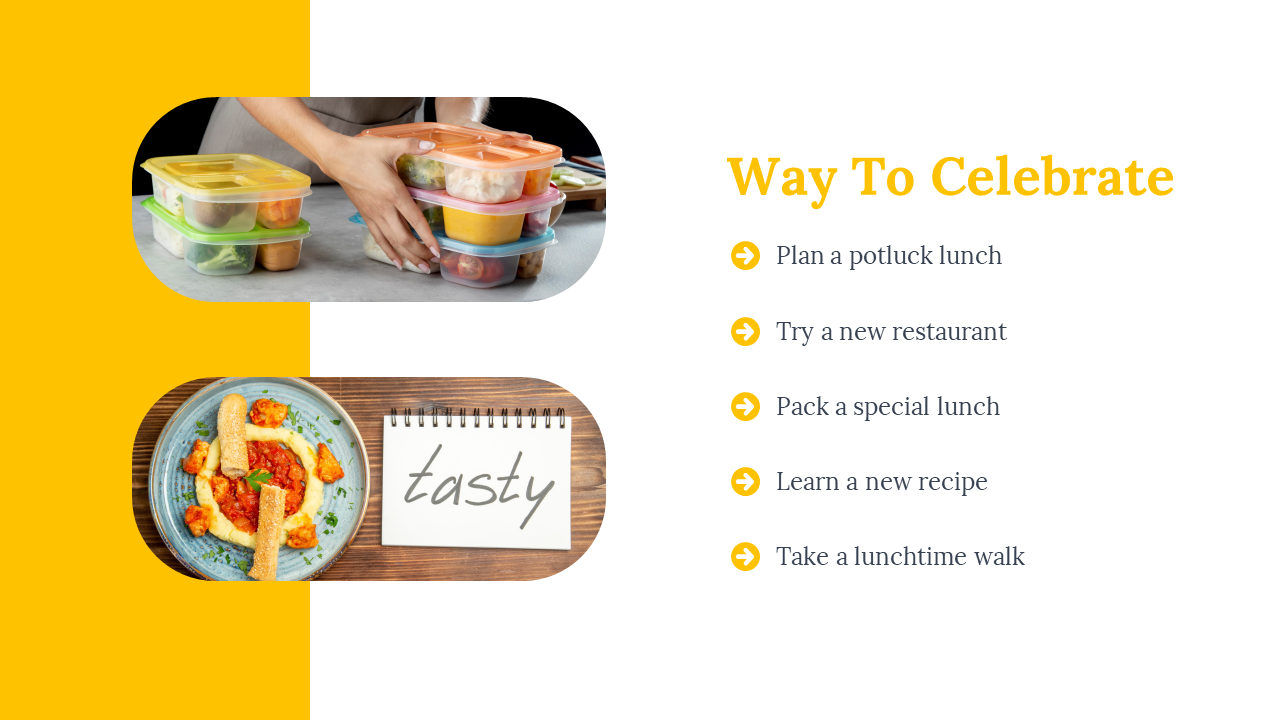 - Mouth watering lunch themed slides.