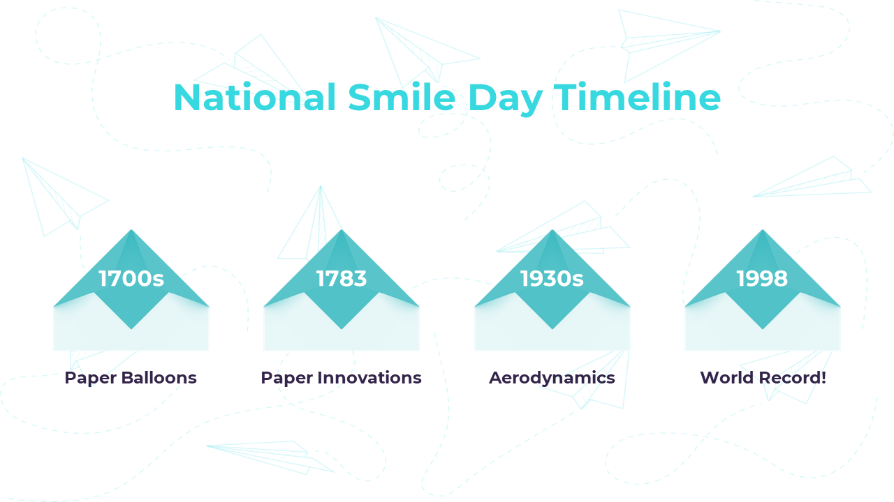 National Paper Airplane Day takes flight with the simple joy of crafting and launching paper airplanes. Observed on May 26th each year, this whimsical holiday invites people of all ages to embrace the art of paper folding and aviation. It's a day to celebrate creativity and the thrill of seeing a humble piece of paper transform into a soaring aircraft. Whether you're a child marveling at the wonder of flight for the first time or an adult rediscovering the joy of play, National Paper Airplane Day offers a chance to unleash your imagination and share moments of pure delight. It's a day to organize friendly paper airplane competitions, exchange design tips, and create memories that will stay aloft in your heart. In a world often filled with complexity, this day reminds us of the magic found in the simplest of pleasures. This versatile PowerPoint template is your ticket to engaging your audience in the fun of National Paper Airplane Day, offering fully editable slides with pre-designed layouts and engaging design elements that capture the whimsy and excitement of paper airplanes, empowering presenters to infuse their presentations with the joy of the holiday, fostering engagement and enthusiasm among the audience, providing a structured framework for discussing the history of paper airplanes, design techniques, and even hosting your own paper airplane challenges, ultimately inspiring your audience to embrace the simple pleasures of creativity and play, and encouraging them to fold, launch, and let their imaginations soar on National Paper Airplane Day, where the sky's the limit for fun and learning.