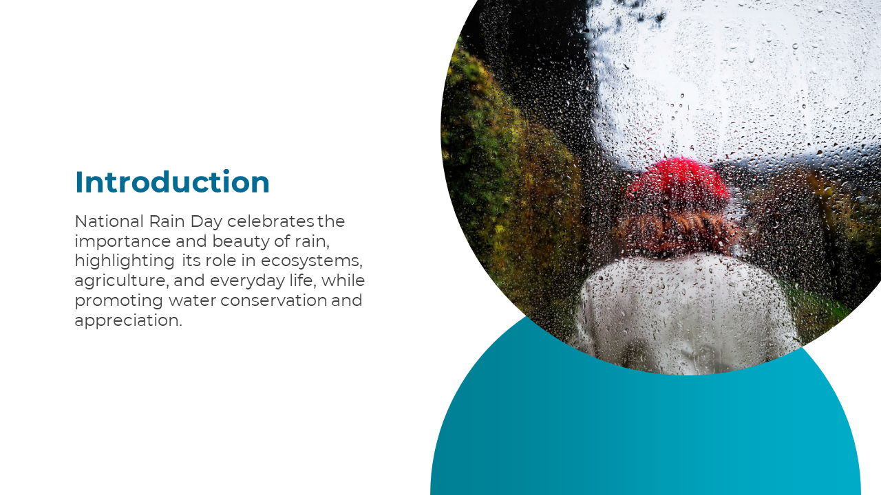 Our National Rain Day PowerPoint template is ideal for educators, environmentalists, meteorologists, and community organizers who want to raise awareness about rain and its impact. This template features fully editable slides, allowing customization to highlight rainfall patterns, environmental effects, conservation tips, and educational content. It provides a visually appealing design to engage your audience and convey important messages effectively. Whether you're organizing a workshop, presenting research findings, or leading a discussion on climate change, this template enhances your presentation's clarity and impact. Embrace the power of rain, download our National Rain Day PowerPoint template today and inspire action for a sustainable future!
