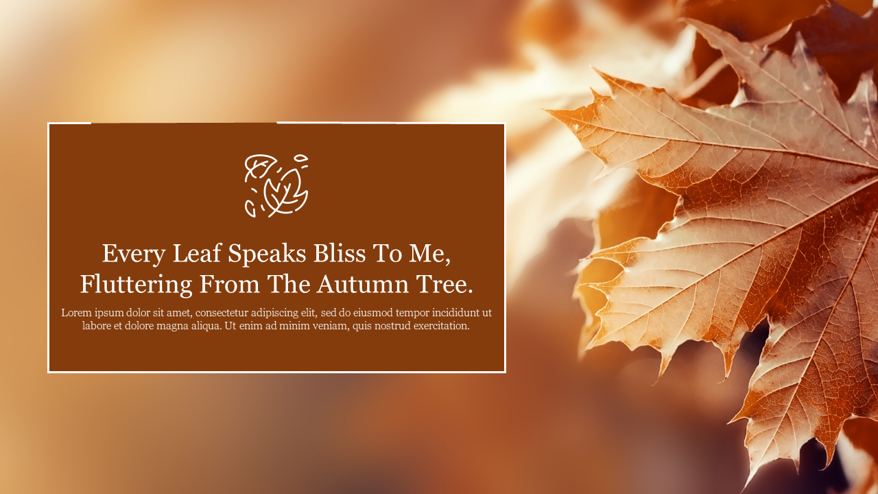 Try downloading this Autumn Backgrounds PowerPoint template for your beautiful presentation. The template is creative and can give a mild outlook on the template. The template is given with orange and brown shades to show the season.