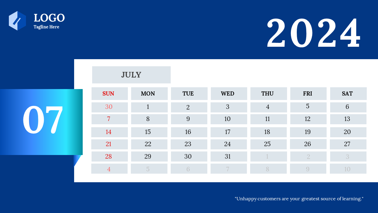 Embark on a year of organized planning with the 2024 Calendar PowerPoint presentation. This dynamic template serves as a visual guide for the upcoming year, providing a structured overview of months, weeks, and days. Tailored for professionals, planners, and individuals seeking efficient time management, the 2024 Calendar template, featuring a soothing blue color theme and fully editable slides, becomes a versatile aid for strategic planning, goal-setting, and event management. Users can seamlessly customize the calendar to cater to their work, academic, or personal schedules, ensuring a visually appealing and organized approach throughout the year. Beyond its aesthetic charm, the template encourages users to embrace a culture of efficiency, fostering a proactive and goal-oriented mindset for a successful and well-planned 2024.