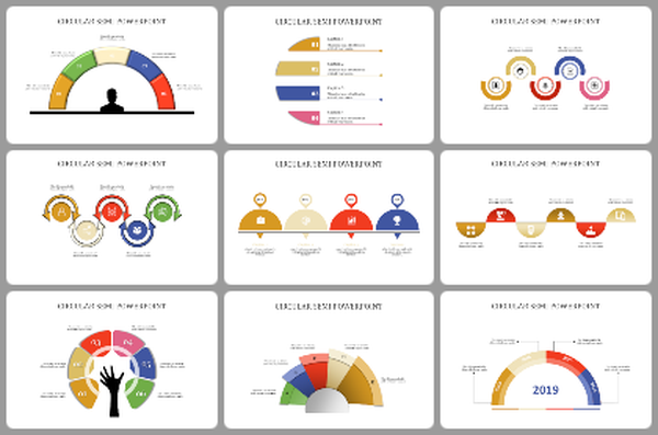 Ready to captivate your audience? Browse our collection of circular-semicircle presentation templates today and find the perfect fit for your next presentation! You'll be amazed at how easy it is to create stunning, professional-looking slides that will leave a lasting impression on your audience. Start creating your unique presentation now!