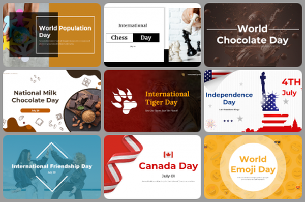 July Month Special Days Presentation Templates are professionally designed templates tailored to the special days and events that occur in the month of July. These templates include a range of creative and customizable slides to help you create engaging presentations related to July's unique occasions.