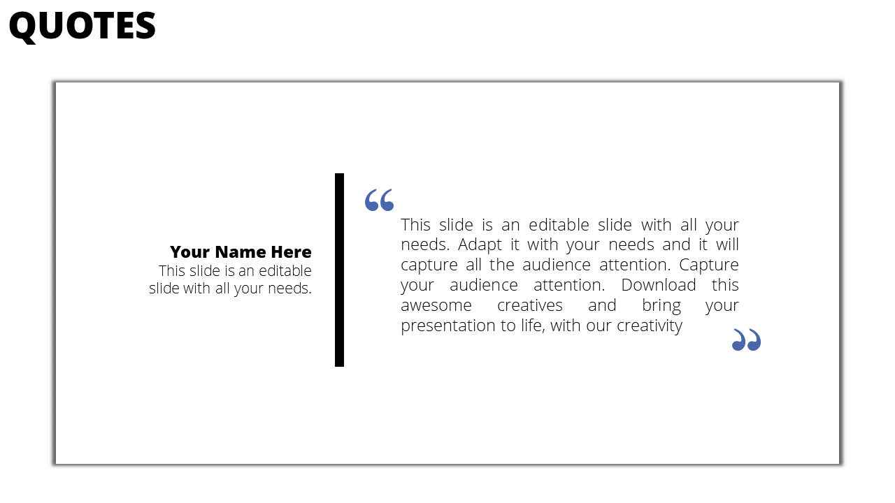 These slides are a great way to inspire and motivate audiences. Also, They provide a visual representation of a quote and help to emphasize its meaning. Quotes are a great way to help people think about a concept or idea from a different perspective.